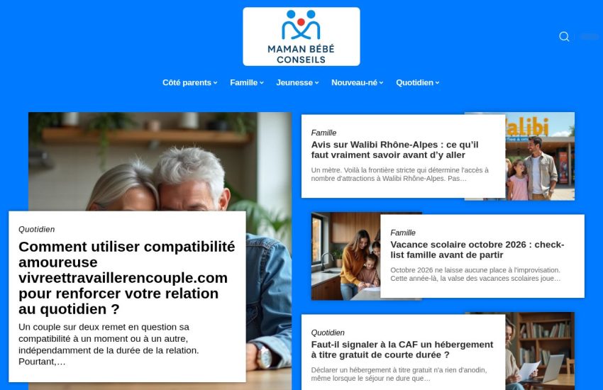 maman-bebe-conseils.fr Site web : www.maman-bebe-conseils.fr Vacance scolaire octobre 2026 : check-list famille avant de partir Anne Saurat-Dubois est elle enceinte : décrypter les indices sans voyeurisme Commencement d’une routine du coucher : le moment idéal L’application Nos devoirs et sa gratuité